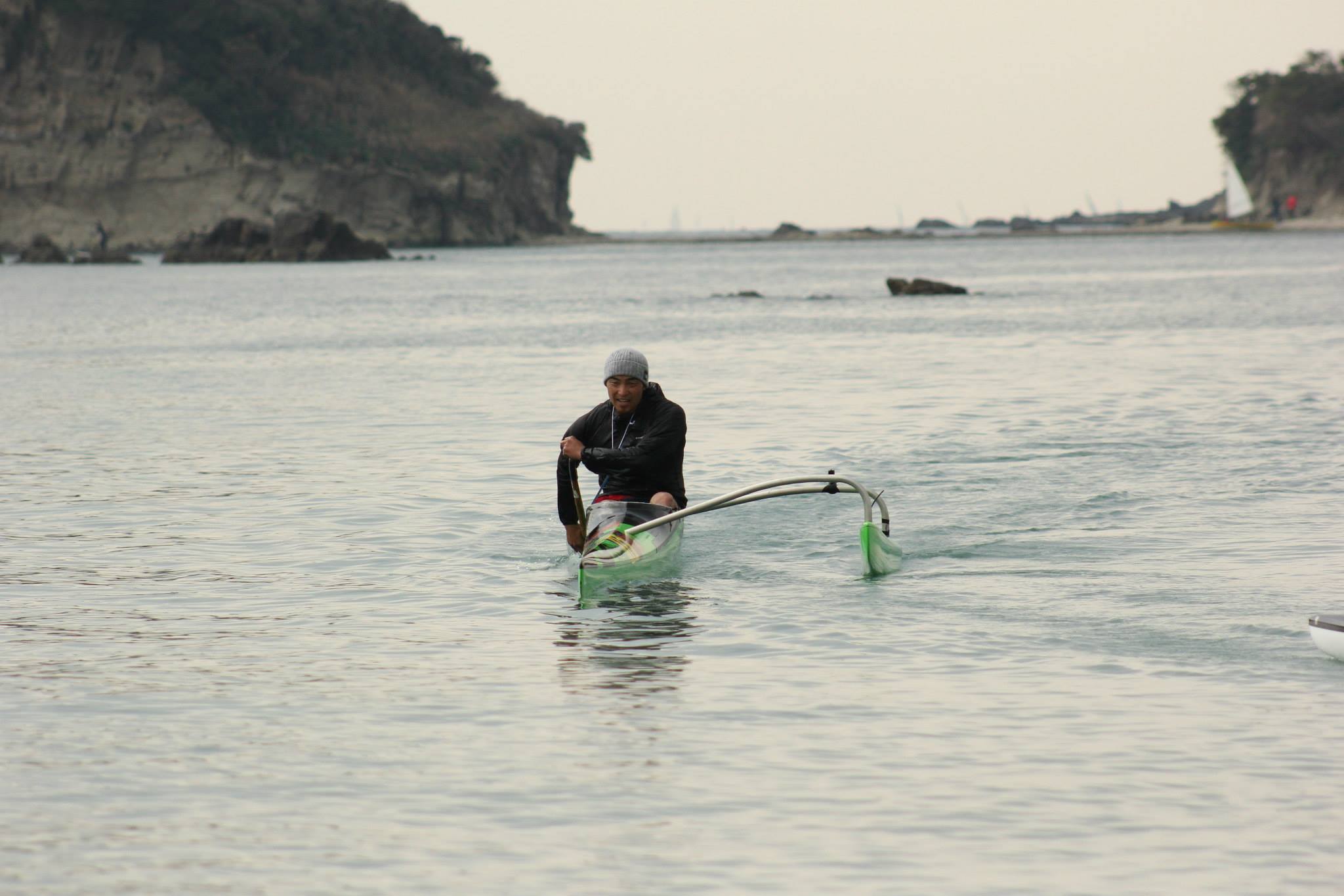 向かい風を少し感じながらも海はフラット、ひと漕ぎひと漕ぎカヌーを無駄無く前に進める意識を集中し気持ちよくカヌーが走ります。