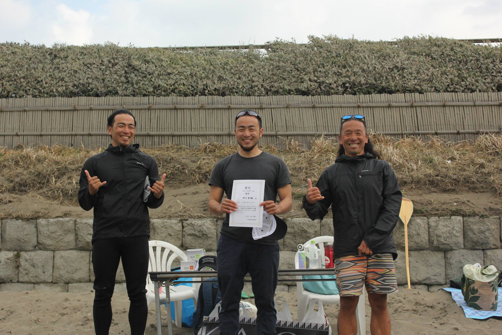 名島を回行してからは向かい風、そこでOC1で出場していた双子の星穂に追いつかれラスト5キロ前に出たり、出られたりを繰り返しながらここ数年味わった事の無い苦しいレース展開、カヌーの動きも雑になり・・・尾ヶ島を回りラスト1KM程の所で少し前に出られ疲れからかカヌーのコントロールが雑になりヒデキでうねりを掴み損ね。