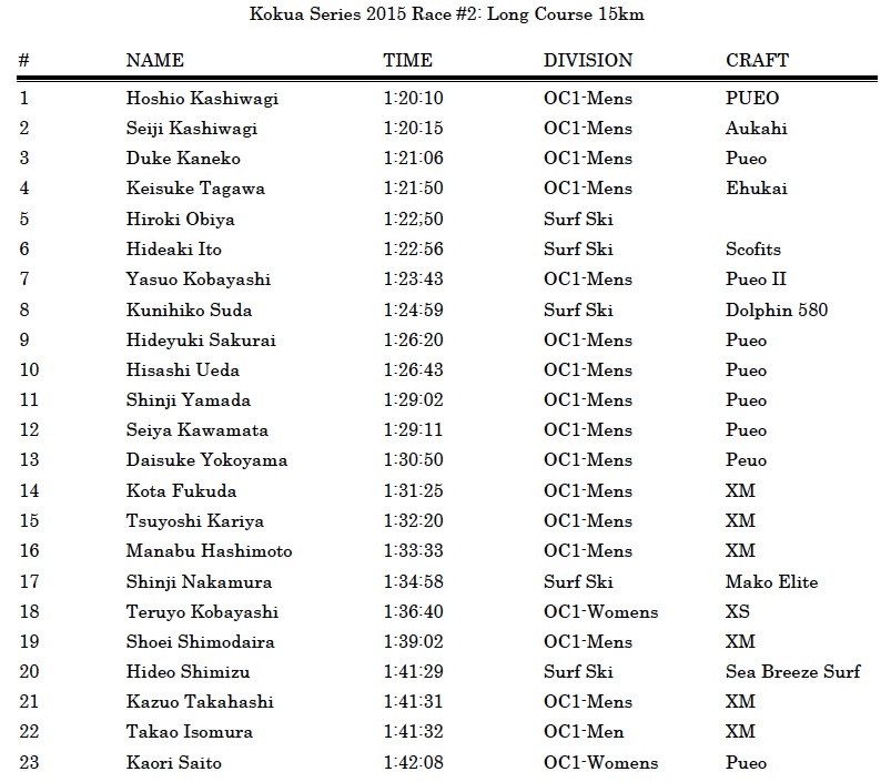 Kokua Series 2015 Race#2に参戦。